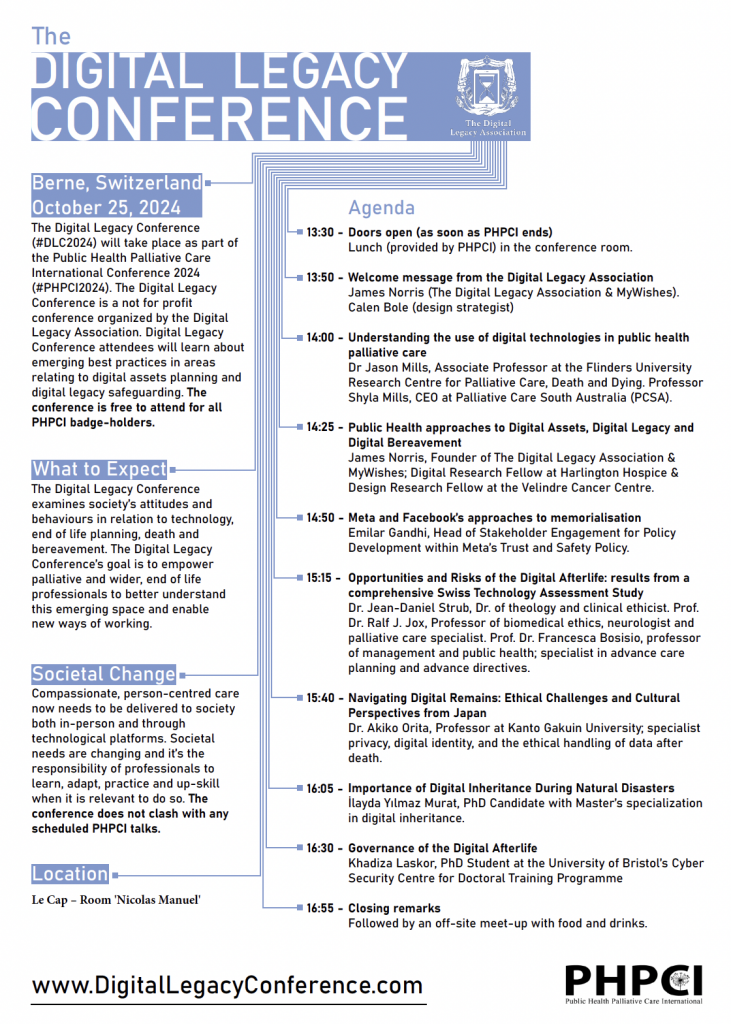 The Digital Death Survey 2024 is being conducted by James Norris of the Digital Legacy Association (UK) in conjunction with Dr. Carla Sofka at Siena College (USA).